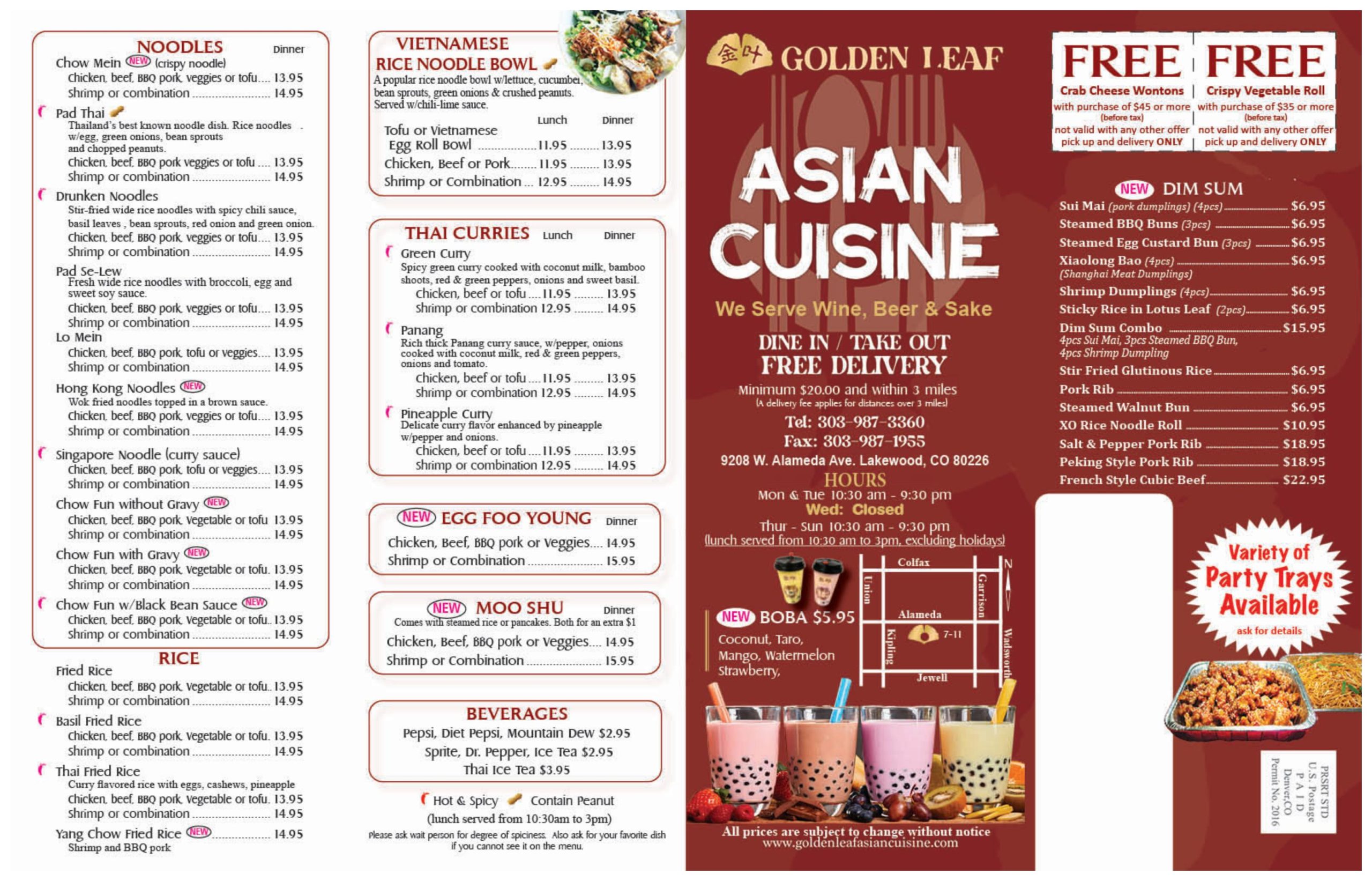 Menu Contact Us Mon - Sun 10:30 AM - 9:30 PM Wed Closed Thu - Sun 10:30 AM - 9:30 PM 303-987-3360 9208 W Alameda ave, Lakewood, CO 80226 Follow
